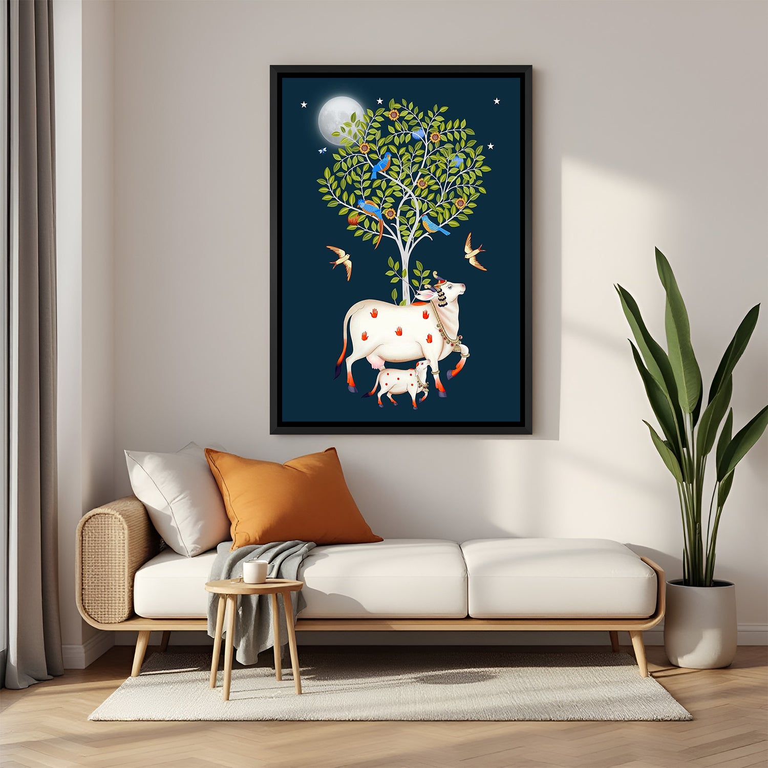 Kamdhenu Cow Pichwai Canvas Painting – Sacred Wall Art for Vastu & Temples