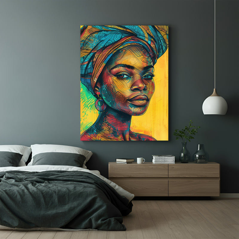 African Girl Wall Art – Turban Style Canvas Print for Ethnic Interiors