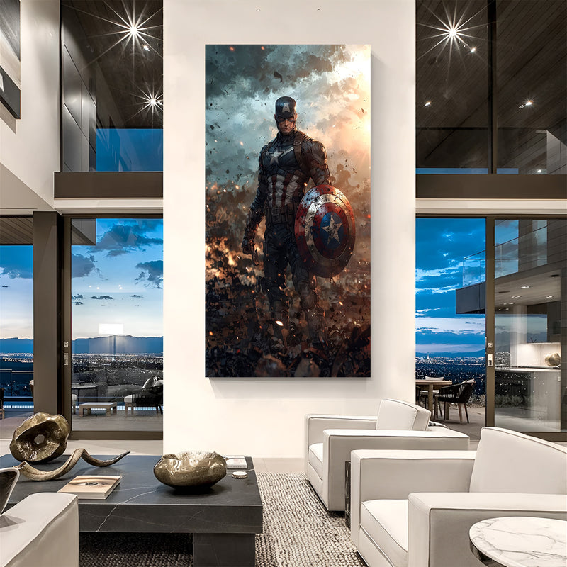 Celebrate the Star-Spangled Avenger with this Captain America Shield Artwork, a high-quality Marvel canvas print showcasing Cap’s iconic vibranium shield in striking detail. This patriotic superhero wall art features bold colors and dynamic textures, making it a must-have for Marvel fans, collectors, and home decorators. Printed on premium gallery-wrapped canvas with fade-resistant inks, this framed or unframed artwork delivers museum-quality durability. Perfect for man caves, gaming rooms, or offices, this Captain America decor embodies strength and heroism. Choose from unframed, black floater frame, or rustic wood frame options to match your style. Officially inspired Marvel art that’s ready to hang—bring home this symbol of freedom and justice today!
