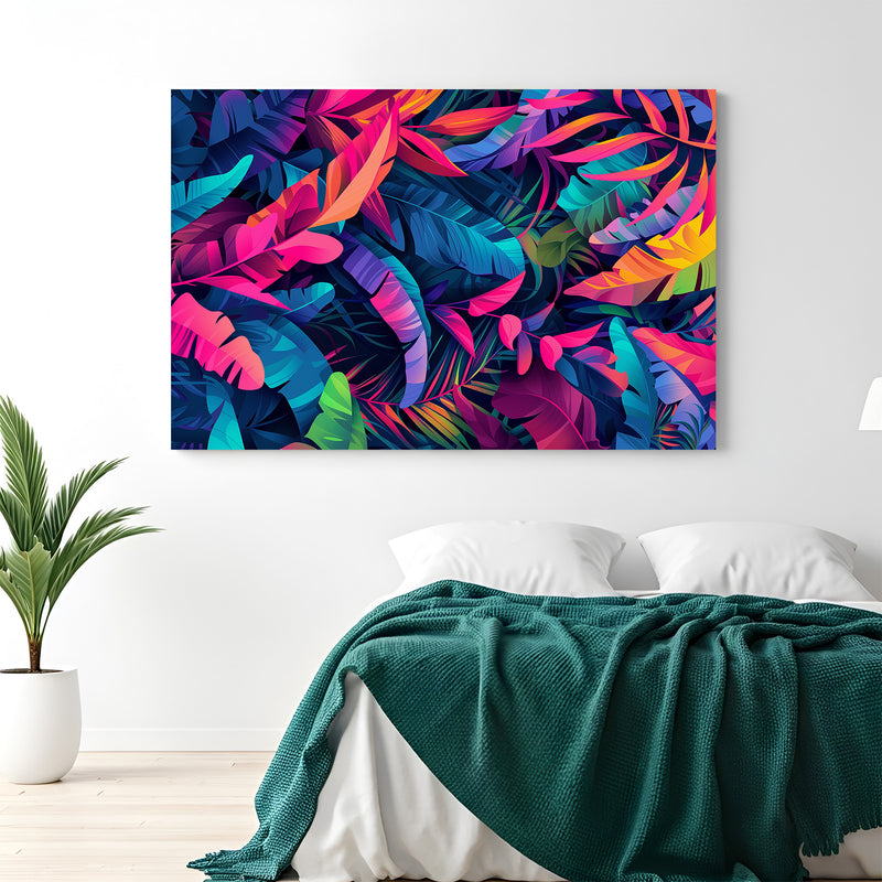Colorful Jungle Leaves – Elegant Modern Art Canvas for Vibrant Home Decor