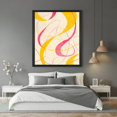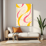 Curvy Lines Abstract Wall Art – Pink & Yellow Canvas Print for Modern Interiors