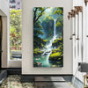 A waterfall canvas wall painting should be placed in the north or northeast direction. Flowing water symbolizes continuous wealth and career growth in Vastu Shastra.
