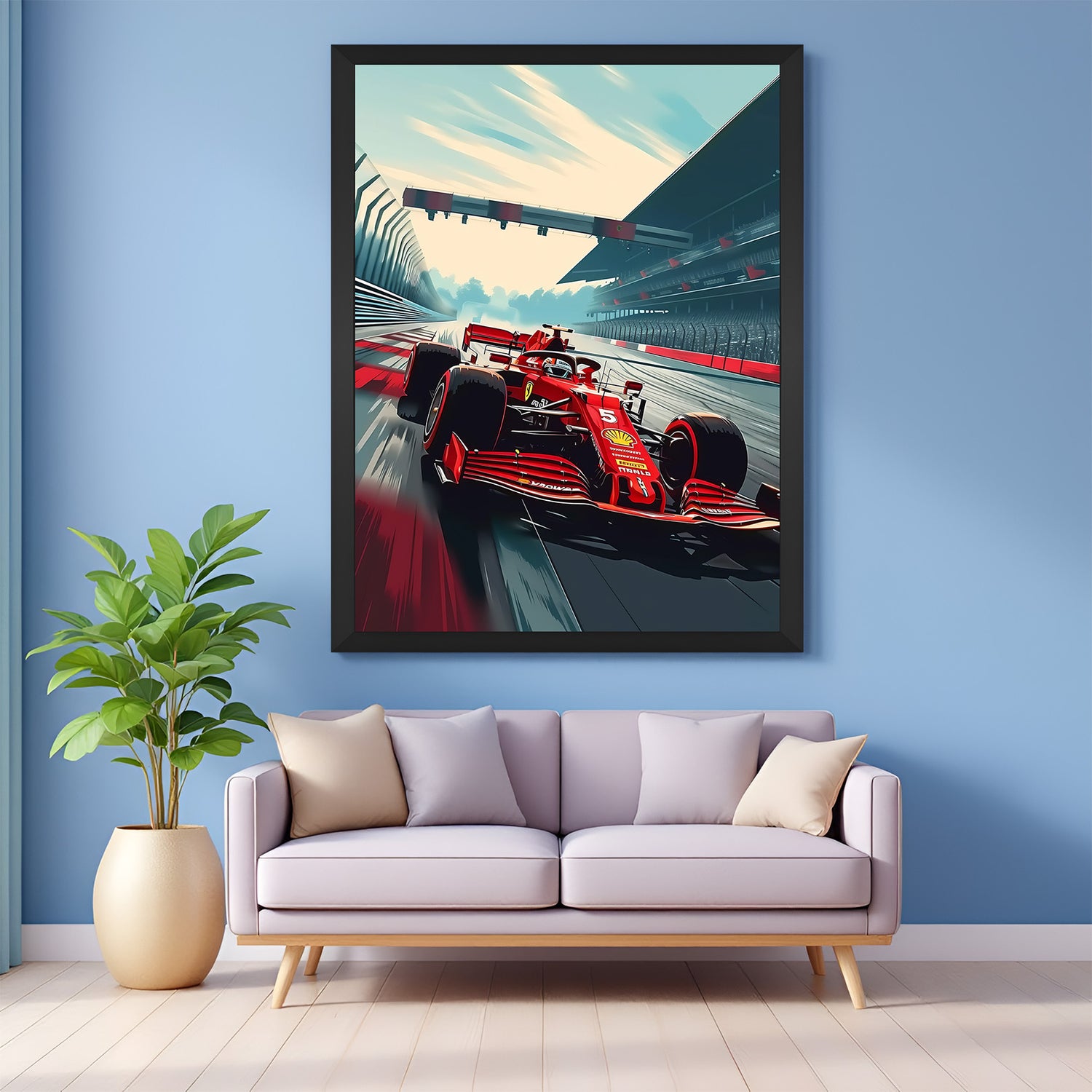 Experience the thrill of motorsport with this Formula 1 Canvas Wall Art showcasing a high-speed F1 car in motion. Capturing the intense energy and focus of professional racing, this artwork brings the adrenaline of the track right into your interiors. With its powerful lines and motion blur, it’s ideal for gaming rooms, offices, man caves, and car enthusiast spaces. The detailed running view of the F1 car racing forward symbolizes ambition, speed, and precision. Printed on premium canvas and available in black or golden floater frames, this Formula 1 wall art is a must-have for lovers of fast cars and bold living.