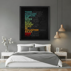 Transform your space with this powerful Live Better Daily inspirational canvas wall art, packed with positive actions and daily habits that lead to success, wellness, and inner strength. Featuring motivational phrases like Think Positively, Work Hard, Eat Healthy, Exercise Daily, Stay Strong, and more — this motivational canvas wall art fuels your mind and body every single day. Printed on premium-quality canvas with fade-resistant inks, it’s ideal for your home decor, office wall art, gym space, or study room. Available frameless or with black and golden floater frames, this positive affirmation wall art is perfect for achievers, health-conscious individuals, and those who believe in personal growth. Let your walls speak inspiration.