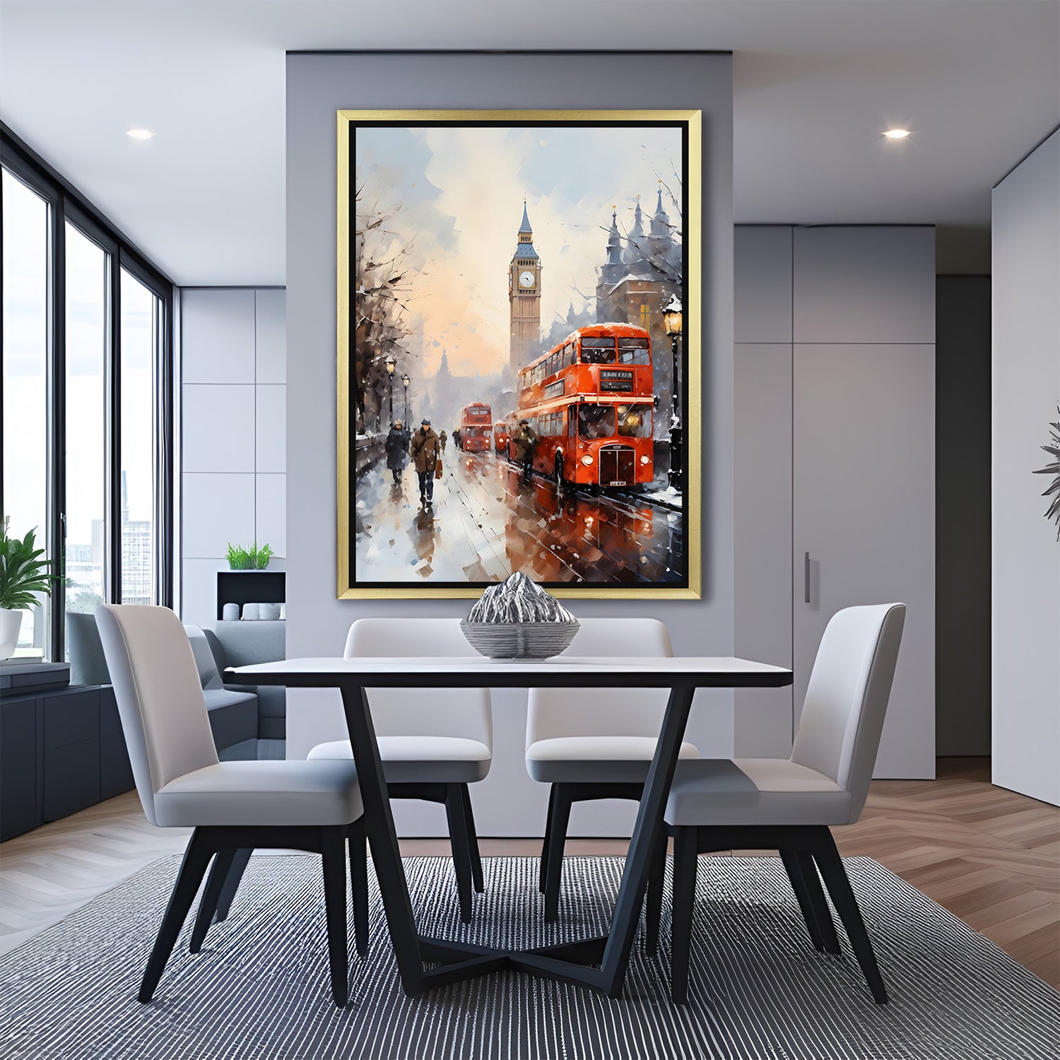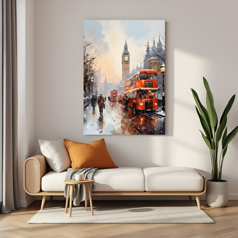 Experience the nostalgic charm of a classic British winter with this vintage canvas art capturing a stunning London street view featuring the iconic Big Ben, red double-decker bus, and snow-covered surroundings. This beautifully crafted canvas printed wall art brings together the old-world architecture, cobbled streets, and gentle snowfall of London in a soft ancient-style wall art aesthetic. The cool tones and delicate brushstrokes give the scene a timeless elegance, making it perfect for anyone who loves city landscapes with a vintage twist. Whether placed in a living room, hallway, office, or study, this vintage canvas art adds global sophistication and seasonal warmth to your space. The piece is ideal for lovers of canvas printed wall art that reflects travel, history, and European charm—all wrapped into atmospheric winter wall decor that feels both familiar and extraordinary.