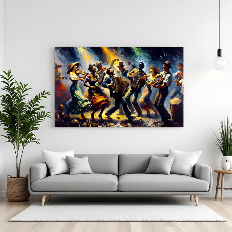 Celebrate life, rhythm, and joy with this modern canvas wall art showcasing people dancing, enjoying, and playing musical instruments in harmony. Perfect for adding energy to your living room, music room, or creative studio, this vibrant wall decor brings an uplifting vibe wherever it's placed. The artistic portrayal of happiness and festivity makes it a standout piece for music lovers and art enthusiasts alike. Printed on premium quality canvas, this modern wall art is a dynamic tribute to celebration and artistic expression.