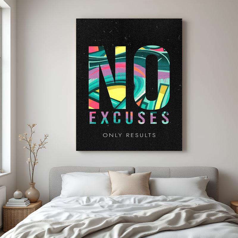 No Excuses Only Results – Motivational Canvas Wall Art for Home & Office