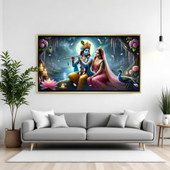 Radha Krishna Divine Love Canvas Art – Premium Spiritual Wall Decor – Framed Hindu God Artwork