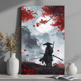 Samurai Shadow with Blossom Trees – Ninja Style Modern Canvas Wall Art