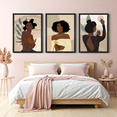 Set of 3 African Bohemian Lady Wall Art – Tribal-Inspired Canvas Prints