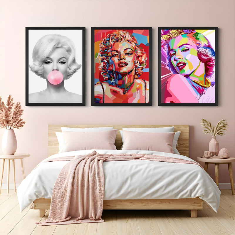 Elevate your interiors with this eye-catching set of 3 altered art canvas wall prints, featuring bold women portraits in a striking mix of monochrome and vibrant color splash styles. The first canvas showcases a stunning black-and-white portrait of a woman blowing a bright pink bubblegum, creating an iconic, fashion-forward contrast. The second image is a burst of vibrancy, with a woman’s face artistically covered in a colorful painted overlay, making the portrait pop with modern flair. The third print features a different woman, equally stunning, highlighted in a paint-splashed effect with an entirely unique color combination, adding variety and artistic edge. These stylish canvas prints are framed in sleek black floater frames, ideal for modern home decor, chic bedrooms, fashion studios, or trendy lounges. Perfect for lovers of color splash art, monochrome pop art, and aesthetic wall prints, this trio brings personality, energy, and elegance to any wall.