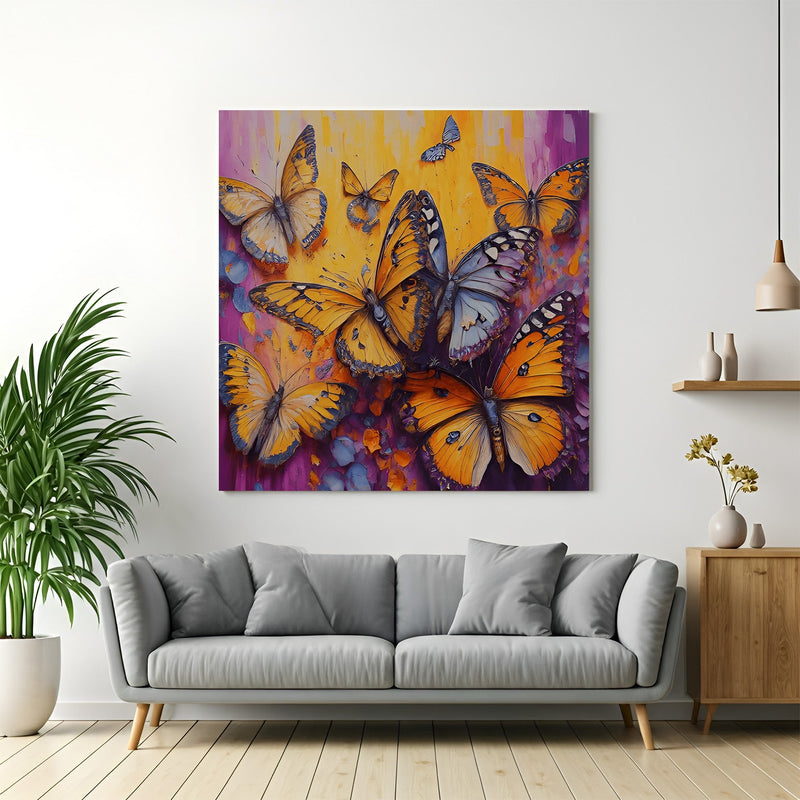 Elevate your interiors with this butterfly abstract canvas wall art, where soft hues and artistic brushwork blend into a serene composition. Featuring delicate butterflies painted in a wash of pastel colors, this canvas art evokes calmness and elegance. The color palette is tastefully muted—like a quiet morning sky—creating an atmosphere of peace and grace. Perfect for adding charm to your living room, bedroom, or creative spaces, this canvas wall decor brings a poetic touch to modern interiors.