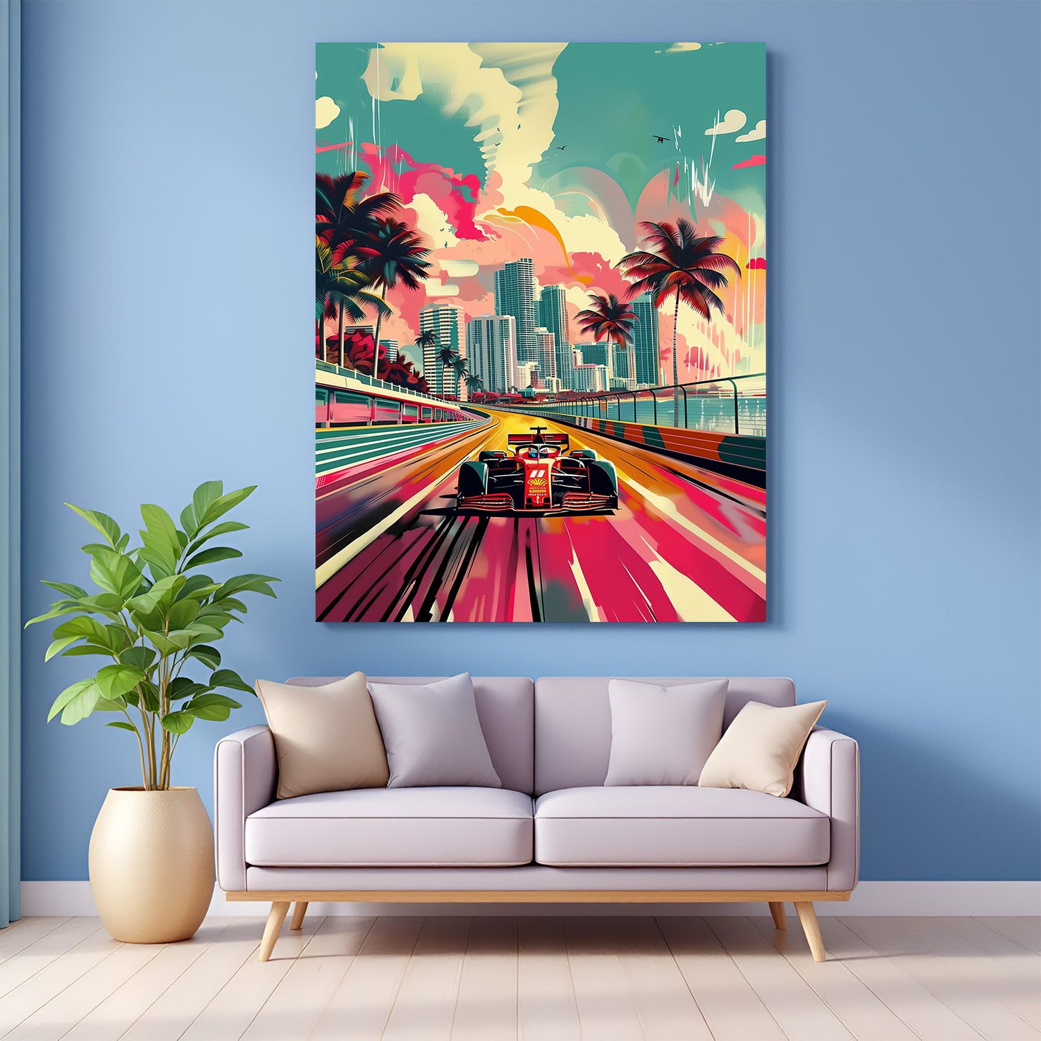 Sports Car Cartoon Wall Art – Animated Poster Style Canvas with Hawaiian Vibes