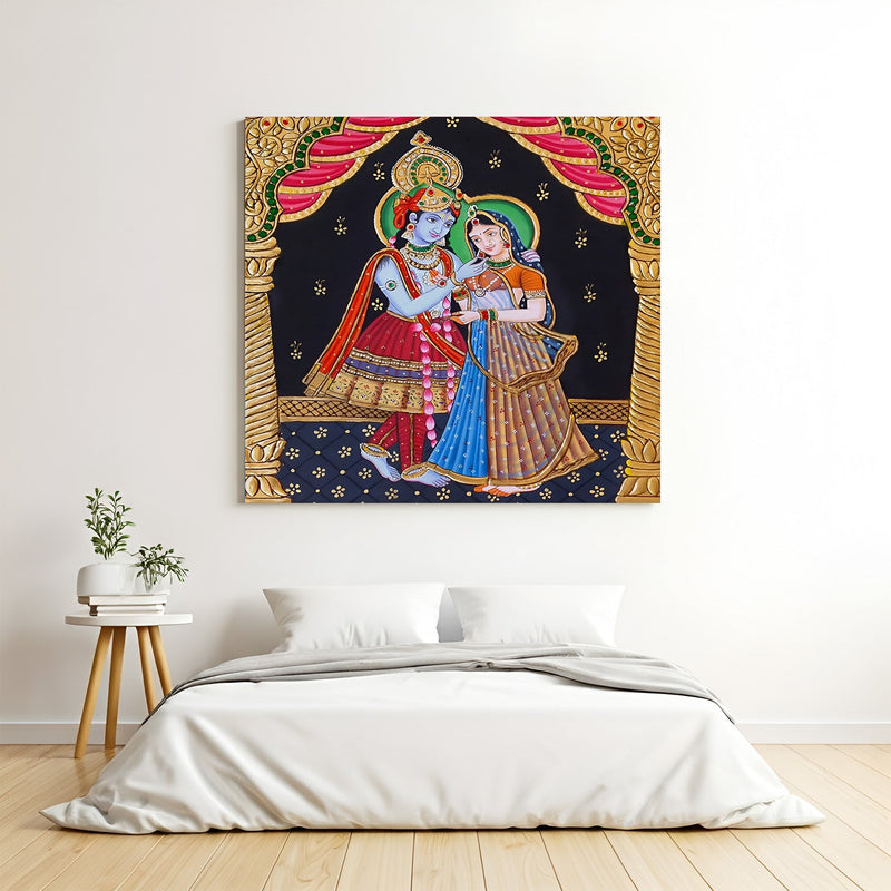 Tanjore Radha Krishna Canvas Painting – Divine South Indian Artwork for Ethnic Home Decor