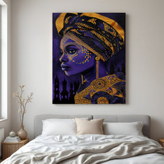 Add power and mystique to your space with this dramatic tribal girl wall art, showcasing a striking portrait of a girl with a purple-colored face and traditional tribal features. Designed in a bold and expressive style, this large canvas wall art captures cultural strength, identity, and beauty in one captivating composition. The deep hues, intense gaze, and tribal detailing make this piece perfect for statement walls in modern living rooms, creative offices, or fashion-forward interiors. Ideal for lovers of African tribal portrait art, modern ethnic wall decor, or large purple canvas paintings, this artwork brings heritage, strength, and artistic edge to your interiors.