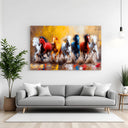 Choose canvas wall art based on your room’s color scheme, size, and purpose. For living rooms, large canvas wall art with calming or statement themes like seven horses or abstracts work best. For bedrooms, opt for soft tones or romantic artwork like Radha Krishna prints. Always consider wall size and ensure the art complements your furniture and vibe.