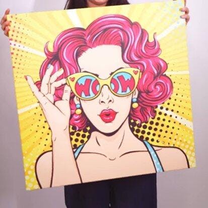 Make a loud and stylish statement with this striking pop art canvas featuring a sexy surprised woman with pink curly hair, an open mouth, and bold expression. Inspired by retro comic style, the artwork captures her holding sunglasses with the word “WOW” reflected in the lenses—radiating dramatic flair, color, and vintage pop culture energy. Ideal for modern bedrooms, fashion studios, salons, or creative interiors, this canvas brings fun, personality, and attitude to your space. Printed on premium-quality canvas with high-definition detailing and fade-resistant inks, this piece is perfect for those who love bold wall decor, colorful vintage art, and expressive modern visuals that command attention.